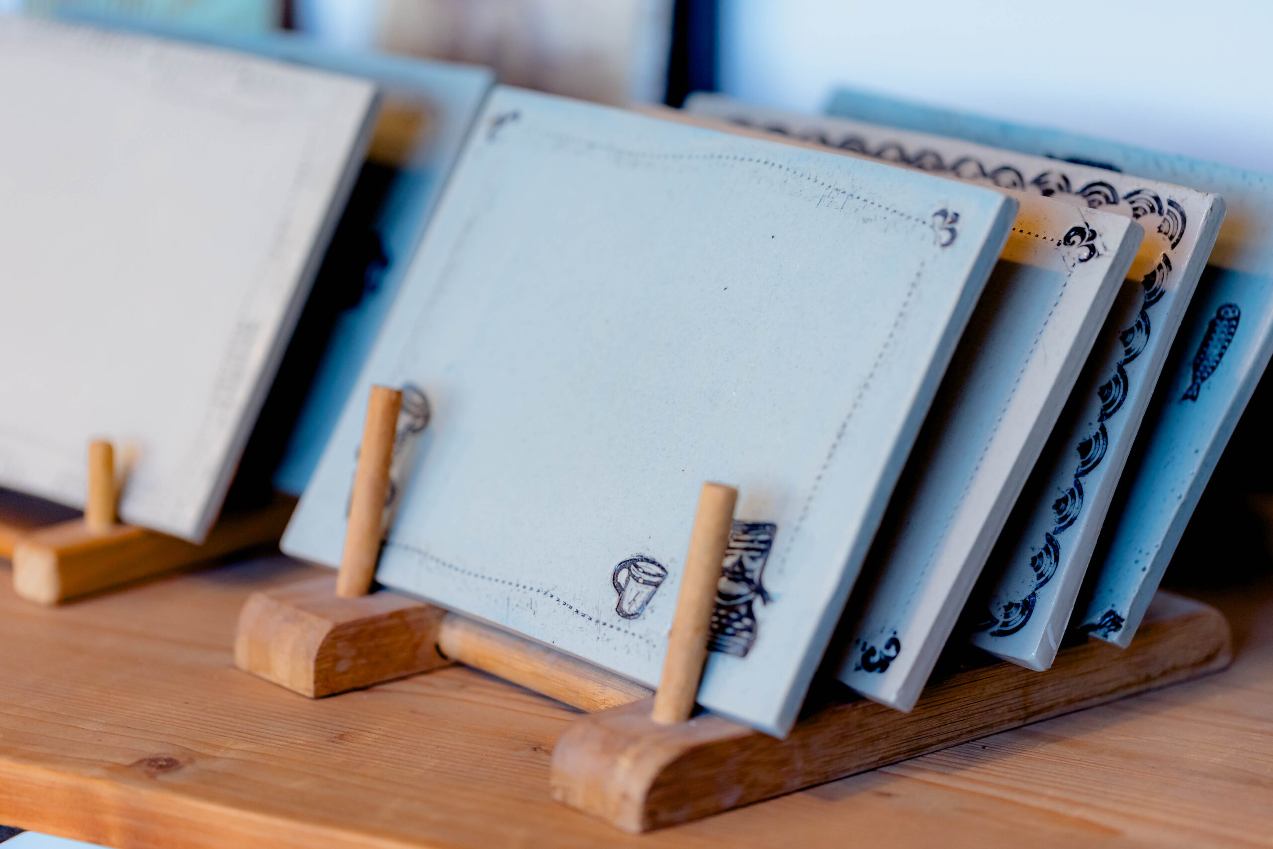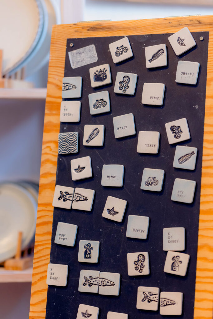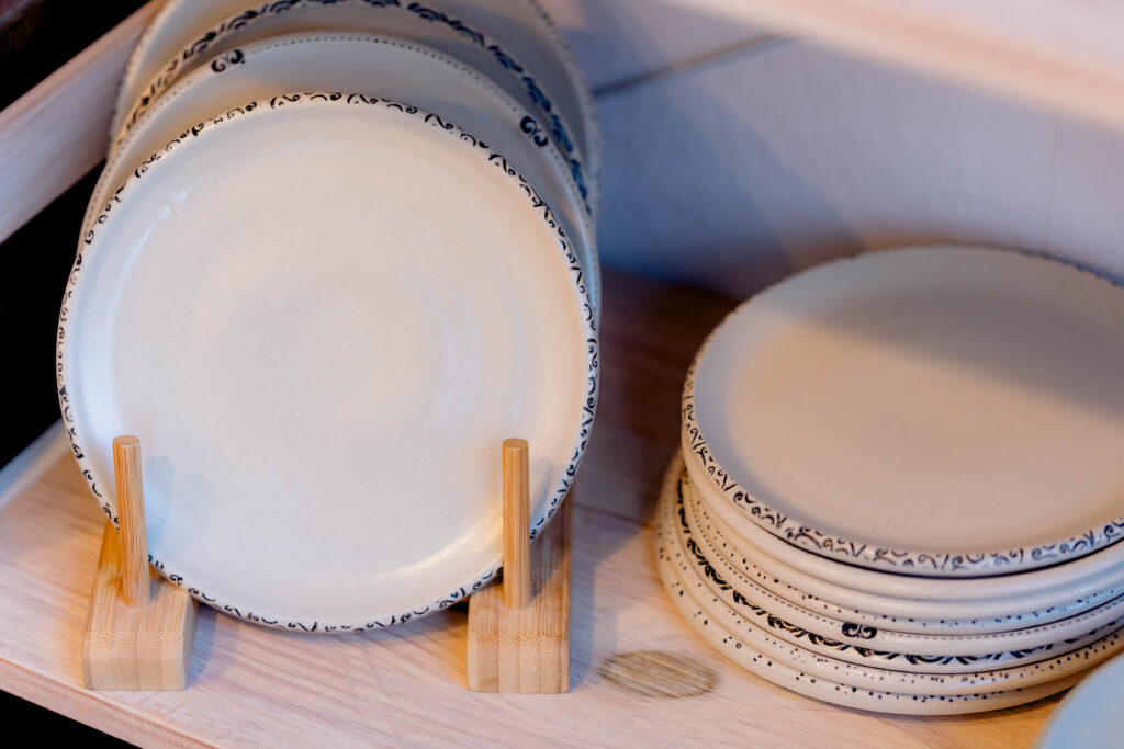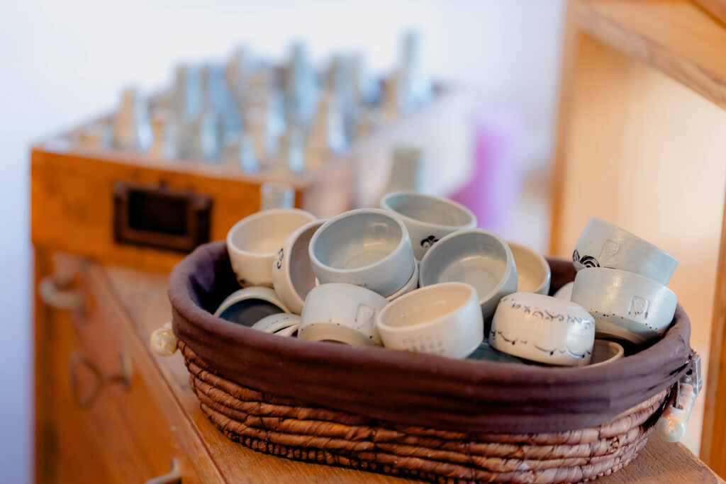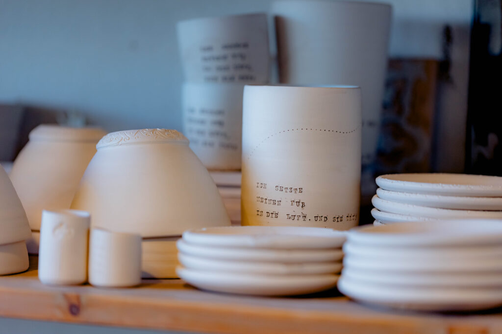 Das Design ist klar, hell und lebensfroh. Das minimalistische Dekor aus gestempelten Ornamenten und Buchstaben lässt die Stücke zugleich schlicht und verspielt wirken. Dieser einzigartige, wiedererkennbare Stil bleibt unaufdringlich im ganzen Set und kann als Einzelstück gut kombiniert werden.